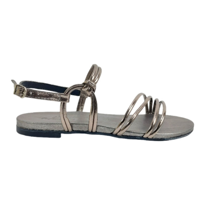 SANDALIA FEMININA RASTEIRINHA DE TIRAS EM NAPA SOFT METALIZADO COR PRATA VELHO