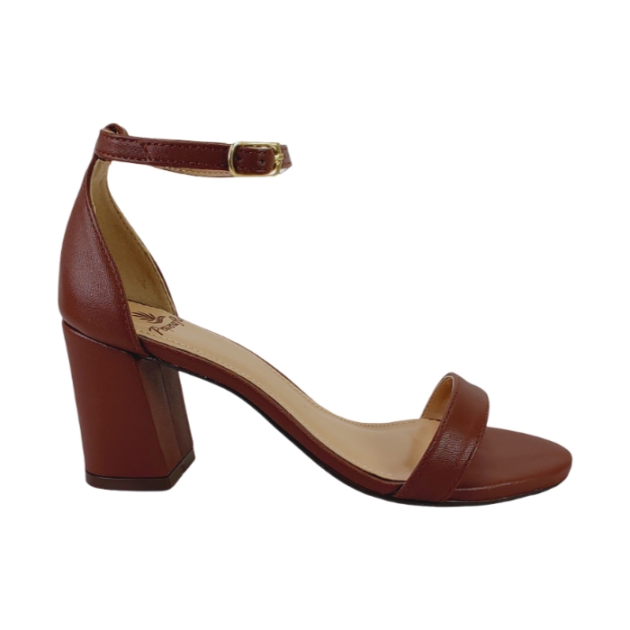 SANDALIA SALTO GROSSO MÉDIO EM NAPA SOFT COR MARROM - TIRA ÚNICA.